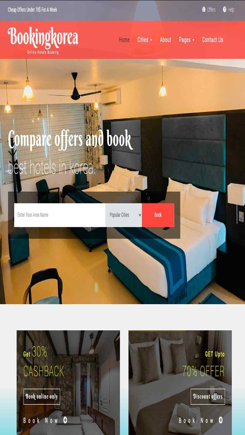 Comparing offers and booking hotels in South Korea by redirecting users to the best offers on the affiliate partner.