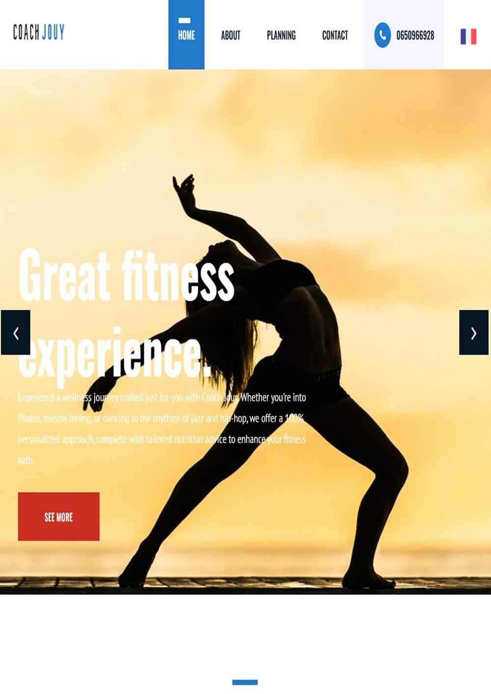 Website presentation for a gym trainer with her planing, a brief resume of her career and what activities she purposed.